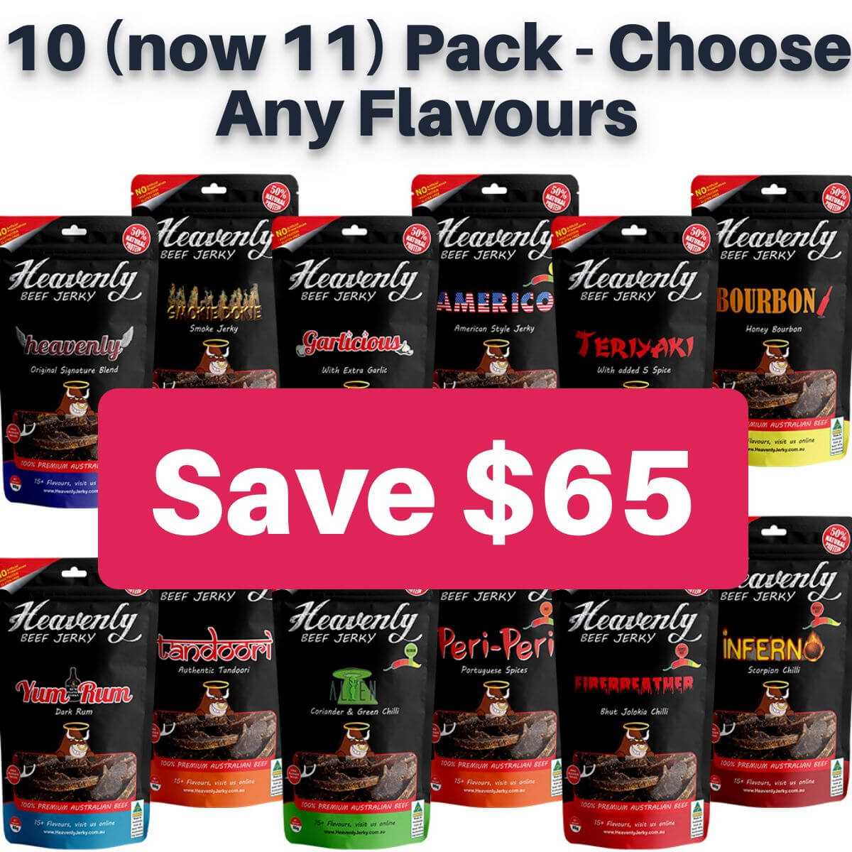 Home / Heavenly Beef Jerky / VARIETY PACK – 10 Flavours / Packets (plus FREE Express Post) / Variety-10-Flavour-Pack-Save-65