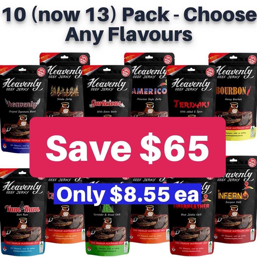 If you can jump on the 10 pack special this is a crazy deal, saving $65 with the included FREE EXTRAS 1 x Large Jerky bag + 2 x Small Jerky bags + Free Gift + Free Express Post! This Crazy Deal makes your Jerky less than $8.55 per bag.